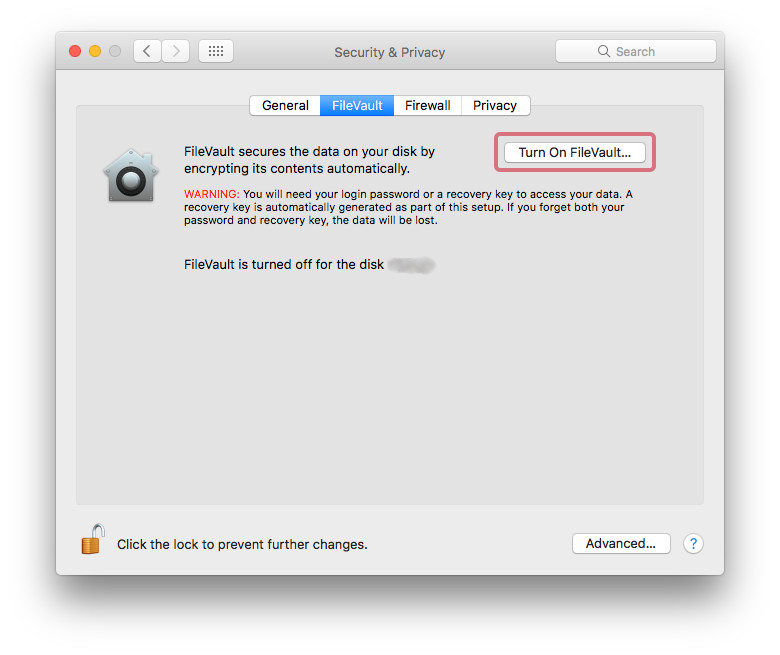 and click “Turn on FileVault”.